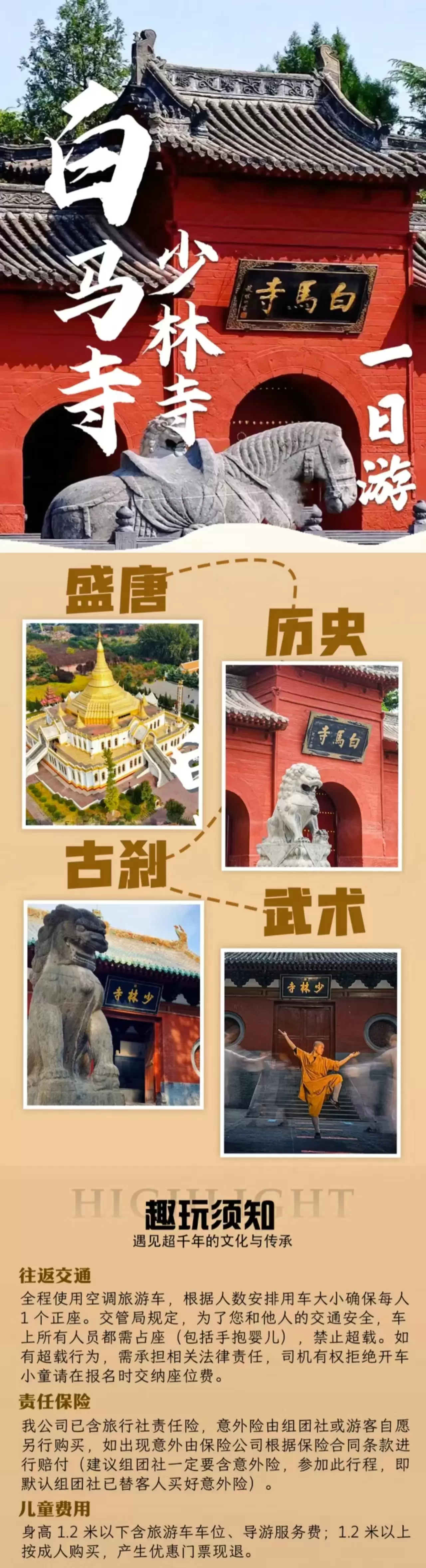 洛阳白马寺+郑州少林寺一日游【洛阳起止+景区大门票+全程优秀导游服务+含往返交通】