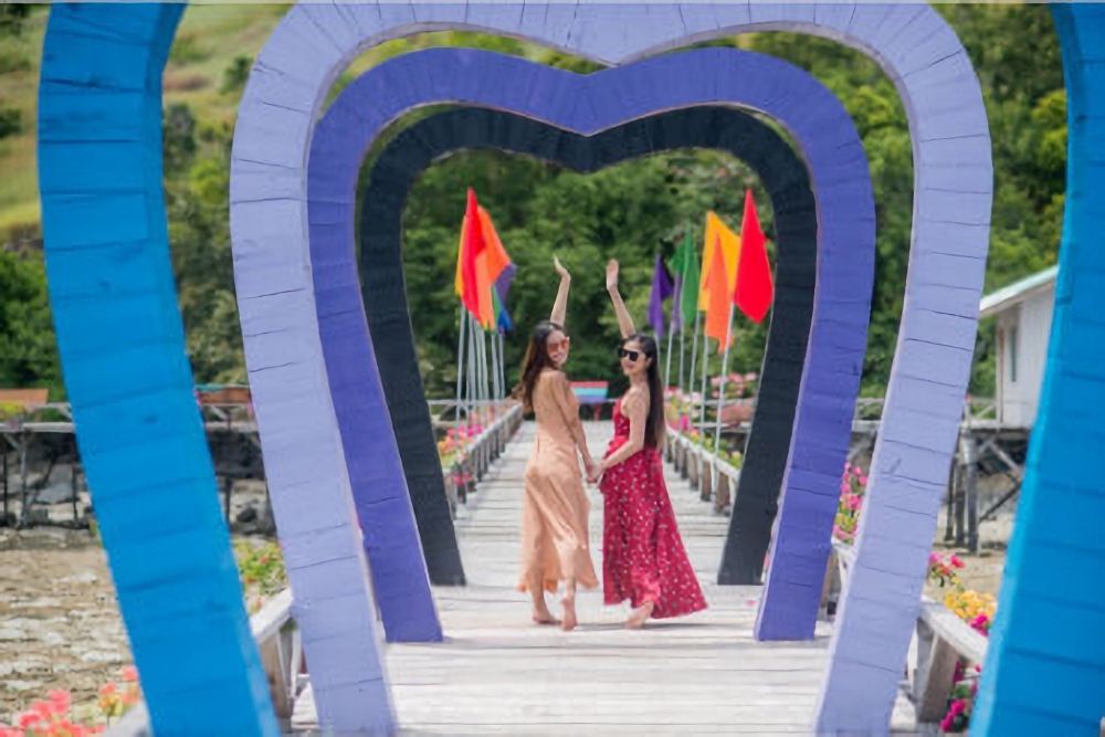 ▲ 走进“爱之门”,打卡丁文马达岛浪漫角落!在情人湾标志性的彩色爱心拱门前,与旅伴留下一张专属合影。 这里不仅是热门拍照点,更是象征旅行中珍贵情感的美丽角落。无论是闺蜜出游还是情侣约会,来这里一定要按下快门,为旅程留住浪漫的瞬间。