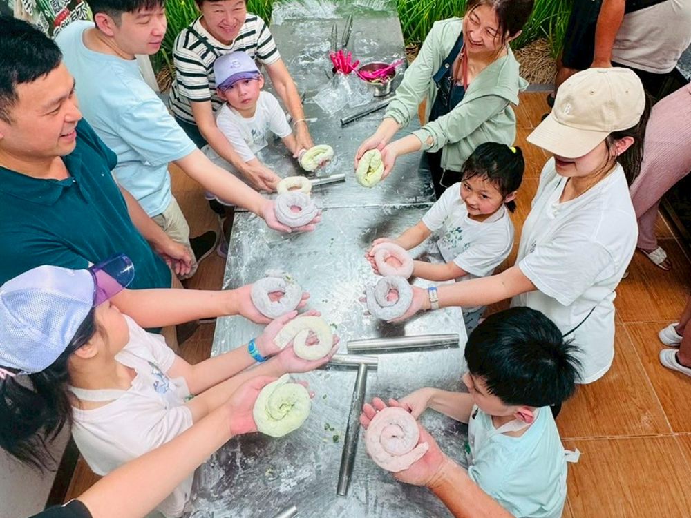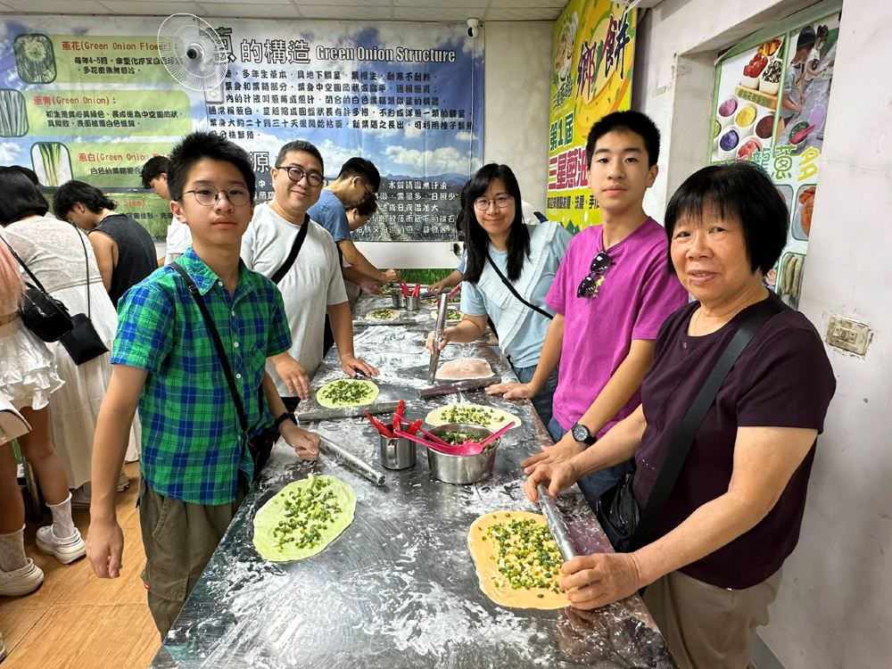 ▲从擀面皮到撒葱再到塑形,大家都好认真,因为等一下就可以吃到美味的葱油饼啦!
