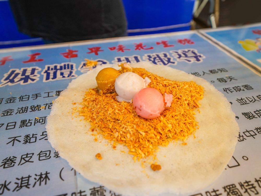 ▲宜兰美食很多,这条路线除了三星葱相关的食品都非常美味外,在梅花湖入口附近还有花生粉冰淇淋,没吃过的外国朋友可以买一个尝鲜哦。