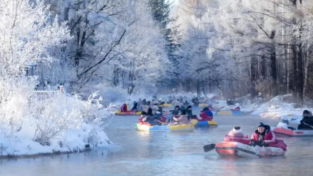 ▲ 漂流于水上,顺水流动,乘着橡皮艇顺流而下,漂流其间,河水清澈见底,时急时缓,温柔而又不乏野性,深处不过一米,浅处也只有十几公分。魔界漂流独特的一点还在于,冬季会两岸奇妙的雾凇,边欣赏独特的雾凇,边享受漂流的激情与刺激,一定有一种别样的感觉(备注:雾凇需要在特定温度和湿度等综合条件出现,不是随时可见)