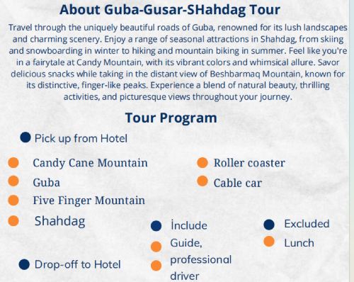 穿越古巴那些独特而美丽的道路,这里以其郁郁葱葱的景观和迷人的风景而闻名。在沙达格,可以享受一系列时令景点,从冬季的滑雪和单板滑雪到夏季的徒步旅行和山地自行车。在糖果山,感受其鲜艳的色彩和异想天开的魅力,仿佛置身于童话世界。在欣赏贝什布拉马克山远处美景的同时,品尝美味的零食。这座山以其独特的手指状山峰而著称。在整个旅程中,你将体验到自然美景刺激活动以及如画景色的完美结合。