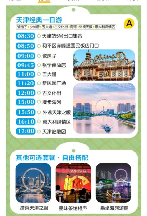 5、在古文化街什祥斋、桂发祥等、还可以免费品尝天津特色小吃,麻花、皮糖、崩豆等天津特色小吃,自愿谨慎购买。古文化街特产店铺为正常经营店铺,非旅行社安排的购物场所,请自愿谨慎购买,索要发票。