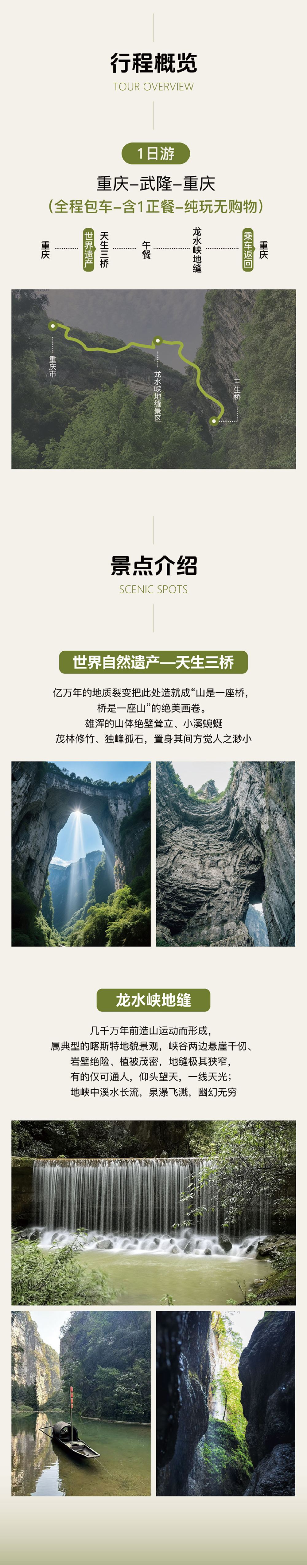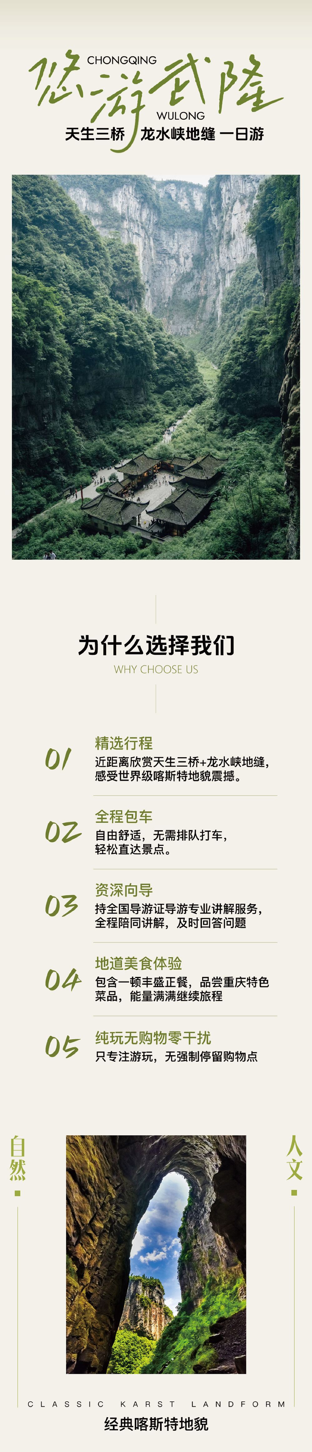 【悠游武隆】天生三桥、龙水峡地缝含门票含车纯玩一日游重庆旅游【[景点精选]天生三桥、龙水峡地缝】