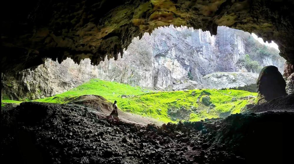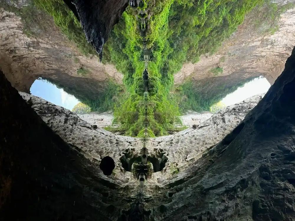 ▲ 位于安顺市西秀区龙宫附近,是一处未经开发的喀斯特溶洞秘境。因天然形成的天门洞与地下河倒影共同构成了酷似“齐天大圣”面部轮廓的奇观,被称为“现实版火眼金睛”。