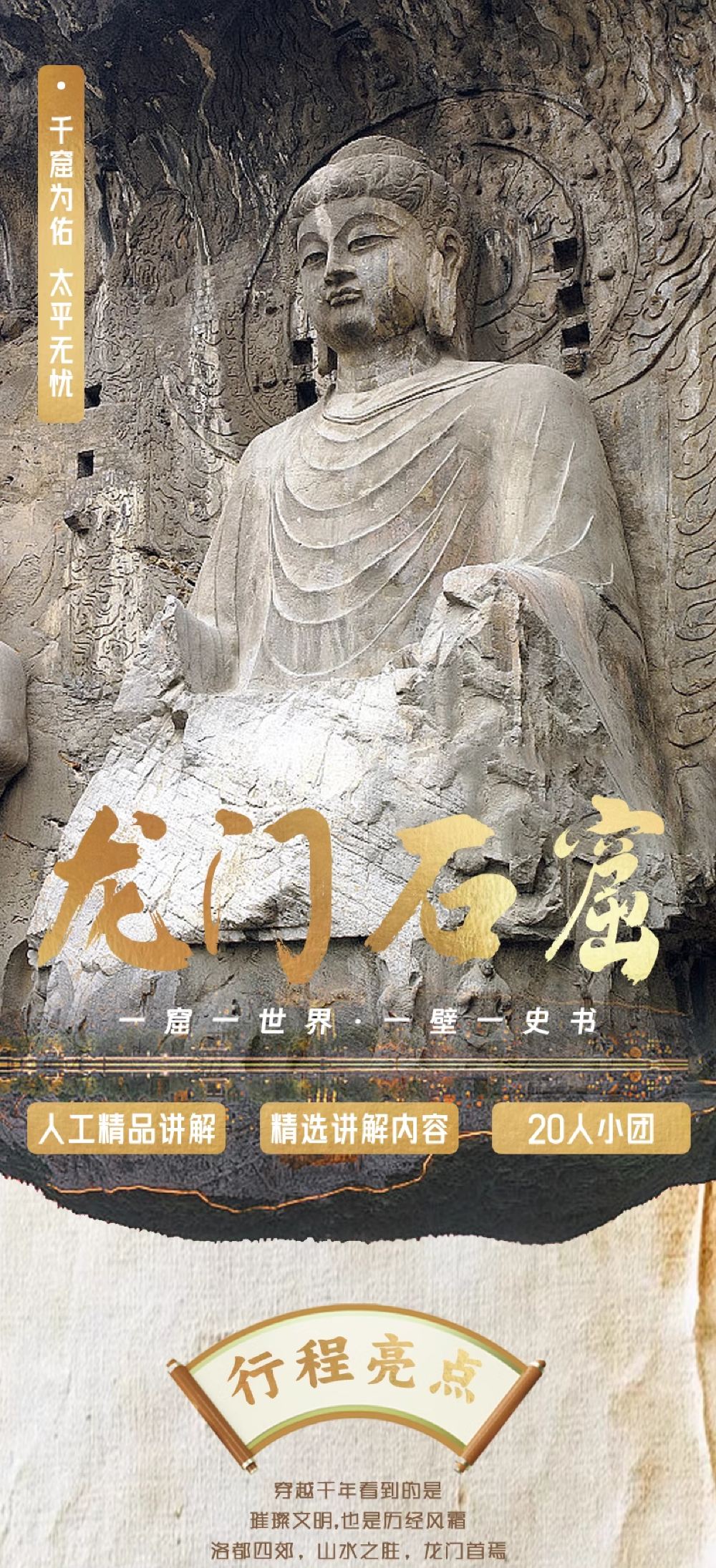 洛阳+龙门石窟一日游2小时真人大咖讲解含耳麦20人纯玩团【【深度讲解】专业持证导游深度人工讲解,2小时的互动讲解】