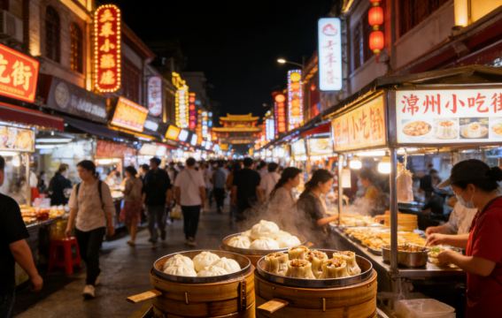 ▲ 小吃街及特色小吃,漳州古城内及周边有许多小吃街和美食店铺,如新华西商业街、延安南路等地,汇聚了各种漳州特色美食。