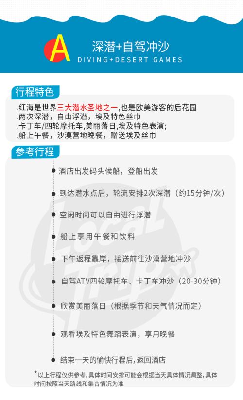 埃及红海潜水 红海出海一日两项 深潜+自驾冲沙 侣客趣【[一日两项]一半海水一半市区,美景和当地文化一同感受】