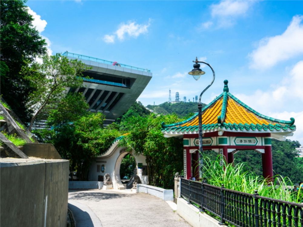 ▲ 狮子亭于1976年建造,旅客可于山顶俯瞰维多利亚港两岸及高楼大厦美景,拍照「打卡」留念!