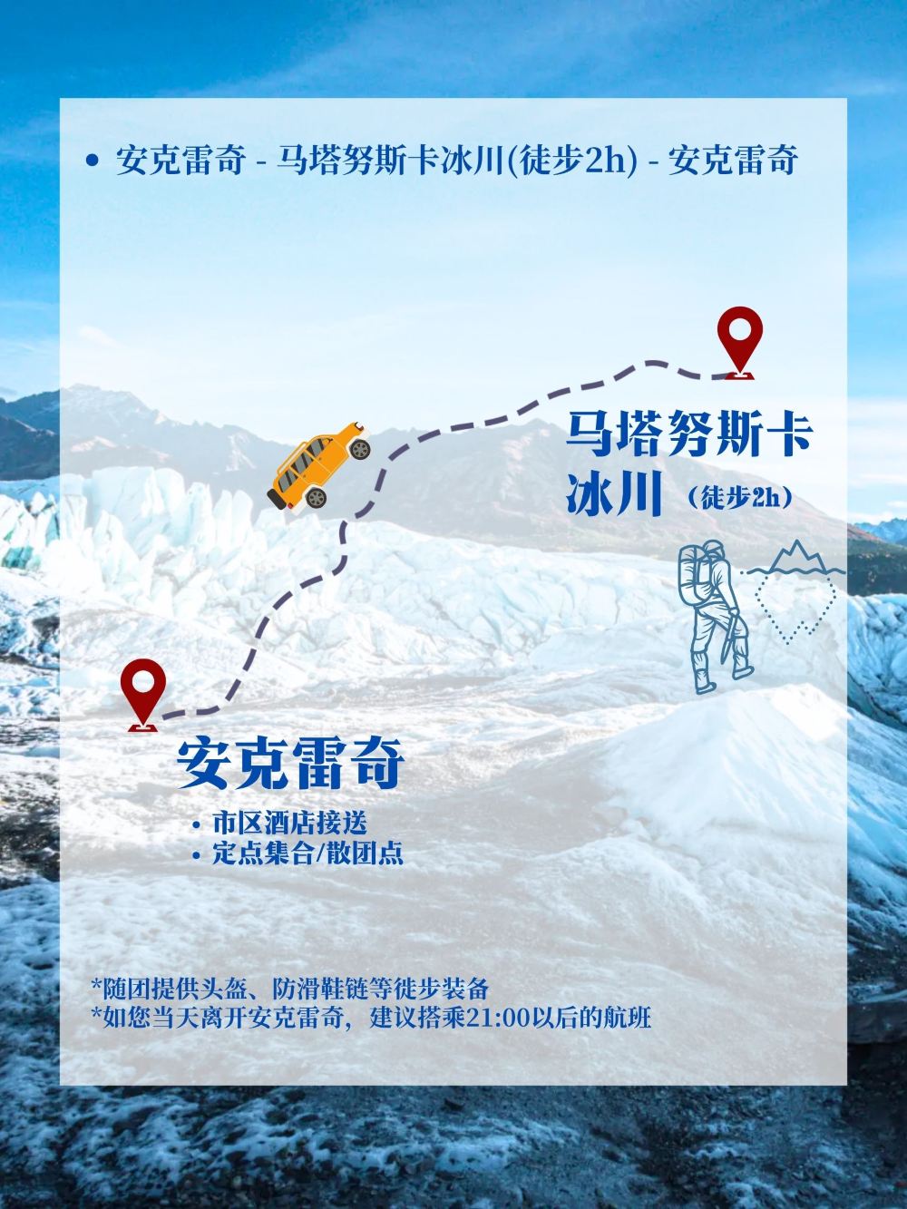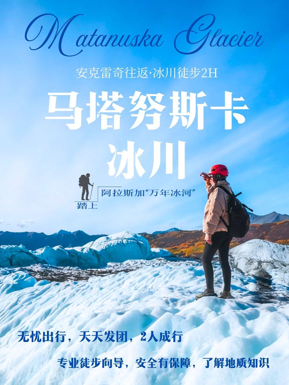 阿拉斯加安克雷奇·马塔努斯卡冰川徒步一日游<拒绝早起出游>【专业导游带领徒步马塔努斯卡冰川2小时,配冰抓鞋+安全帽】
