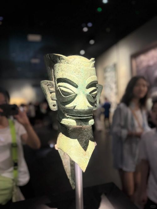 ▲ 三星堆震撼的,莫过于那些突破想象的青铜神物:高达2.62米的青铜大立人,手握何物成千古之谜;青铜神树扶桑十日,再现《山海经》神话;纵目面具、黄金权杖,勾勒出一个“人神共舞”的古蜀王国。这些非中原体系的文明造物,以其诡谲的造型与超凡的工艺,彻底改写了中国青铜时代的文明图景。