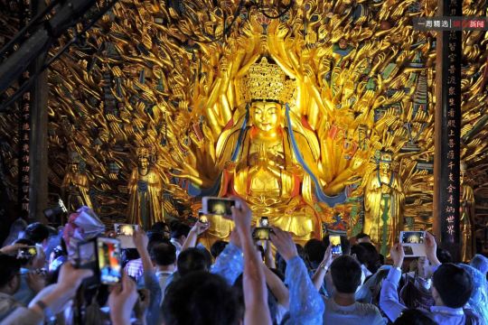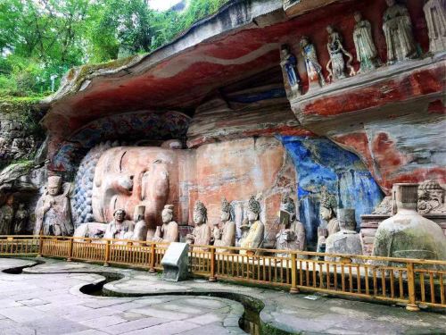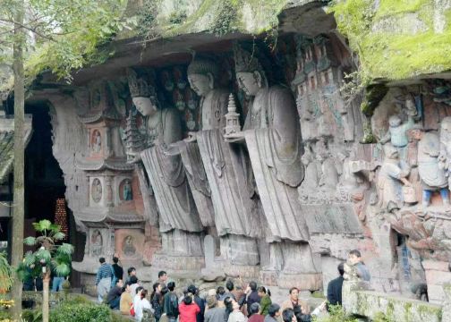 ▲ 位于北山顶部,主要集中在佛湾,共计 452 龛窟,近万尊造像,以佛教密宗为主,造像题材 51 种。其以雕刻细腻、精美典雅著称于世,展示了从晚唐到两宋时期中国民间佛教信仰及石窟艺术风格的发展。