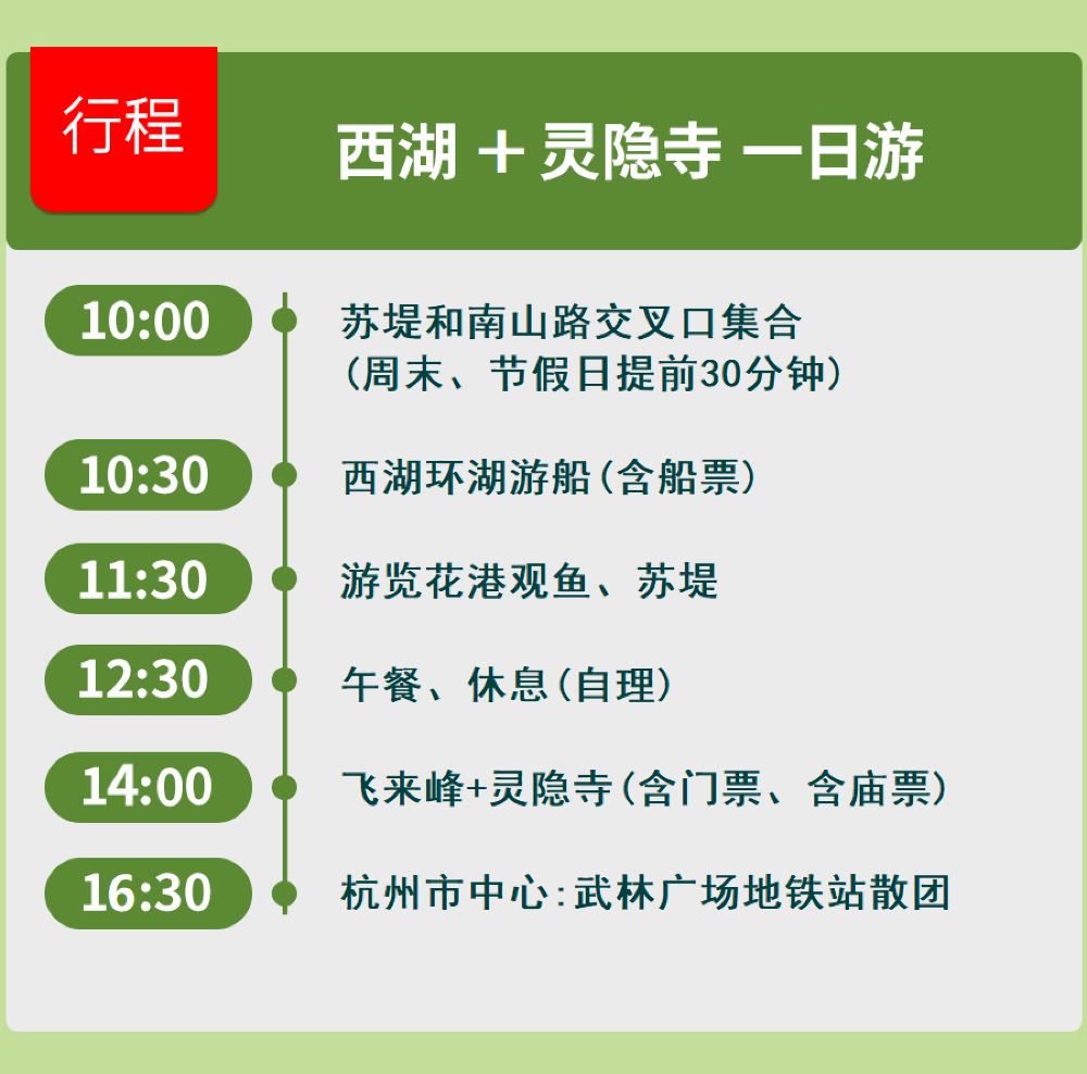 【真纯玩10点出发】杭州西湖+西湖游船+灵隐寺一日游【1.优选线路: 睡到自然醒上午10点出发,看景不如听景,听导游娓娓道来杭州的历史文化。】