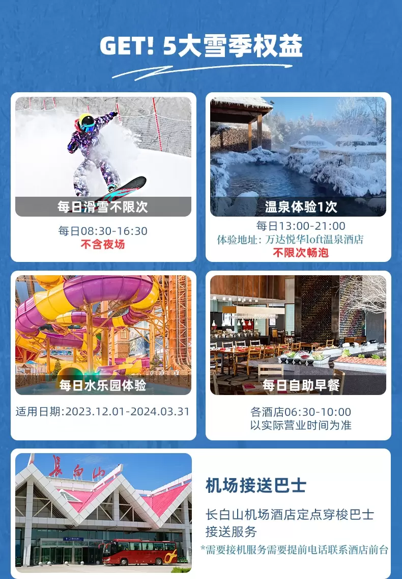 【周六不加价】长白山池西万达悦华loft酒店1-3晚+万达滑雪票+水乐园票+漂流+酒店温泉无限次+早餐+接送机