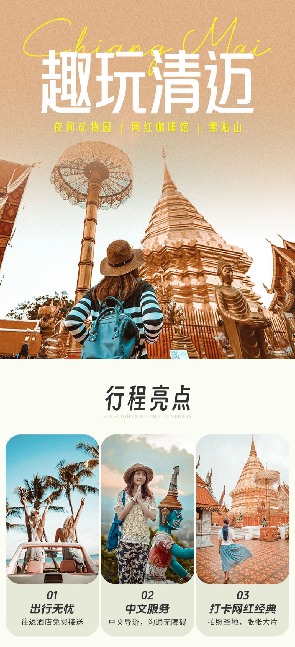 清迈素贴山+双龙寺+清迈大学一日游 清迈夜景/泰式火锅可选【游览清迈著名佛教圣地双龙寺,欣赏气势磅礴的彩色神龙雕塑】