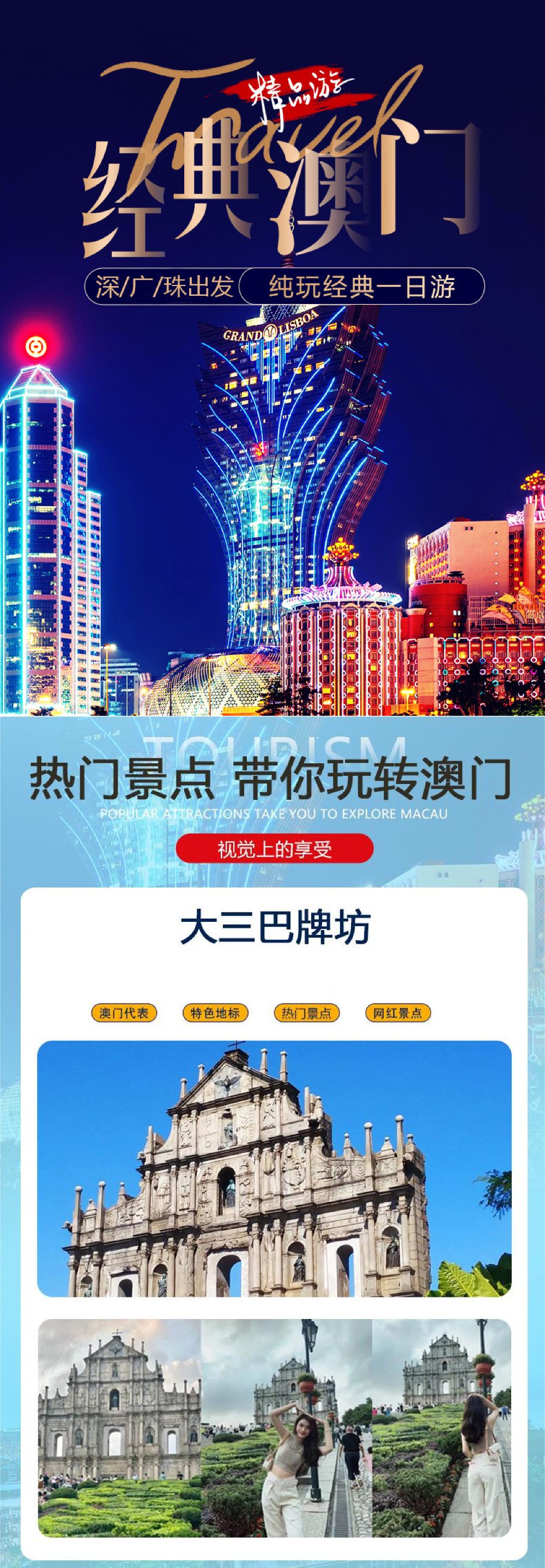 深圳-澳门一日游大三巴+威尼斯人+流量卡+午餐+流量卡跟团游【【优良资质】专注港澳旅游,实力让口碑落地,多地出发+多套餐可选(总有一个适合您)】
