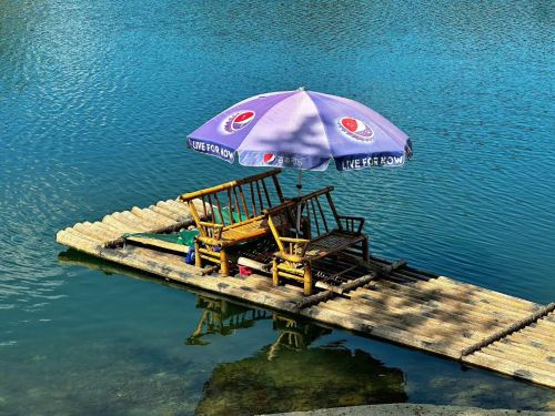 ▲ 楠溪江狮子岩竹筏漂流,平缓无险,50分钟船行山水间,打卡“狮子戏球”,江风拂面超治愈。