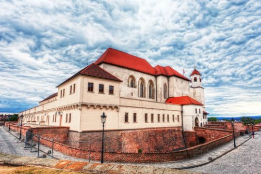 ▲ 斯皮尔博城堡(Spilberk Hrad)建于13世纪,向来为国王的住所,更扮演了重要的防御角色,18世纪被改建为军事要塞和监狱,囚禁了许多不同国家反奥匈帝国的囚犯,第2次世界大战期间,还被占领此地的纳粹作为监狱之用。参观完监狱博物馆,沿着山波缓步上行,绕了一圈后抵达城堡上层的另一个博物馆─布尔诺市政博物馆,这个博物馆有3个主要展区:文艺复兴迄今艺术展、布尔诺历史回顾展与布尔诺建筑演进。斯皮尔博城堡居高临下,青葱绿地十分幽静,在此漫步远眺布尔诺街道,别有宁谧轻松的感受。