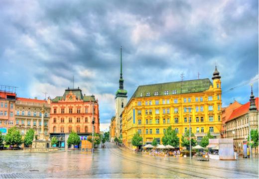 ▲ 自由广场是布尔诺的主要繁华区,周围有许多商店、咖啡店和餐厅,也是观光客三三两两聚集谈天的地点,展现无限活力。从Masarykova街到自由广场之间,有许多贩售纪念品和服饰的商店,著名的波西米亚水晶当然在此也能找到踪迹,主要的服饰品牌也都设有分店,其它如刺绣、陶瓷、绘画,或是银行、咖啡店、餐厅都比肩相邻,观光客很容易在此满足所有旅途中的需求。