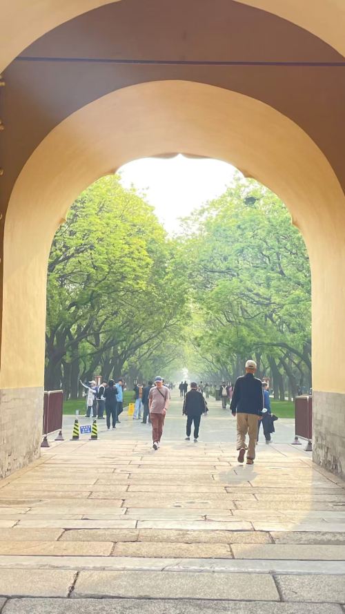 ▲ 更难得的是这里的“闹中取静”:古柏群里,几百年树龄的松柏枝繁叶茂,阳光透过枝叶洒下斑驳光影,偶尔能听到鸟鸣与风穿过檐角的声音。游客的喧闹仿佛被红墙过滤,只剩内心的平和——原来这座曾象征皇家威严的祭天圣地,如今成了普通人可亲近的“城市绿洲”,既有历史的厚重,又有生活的烟火气。