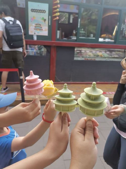 ▲ 天坛文创雪糕多以祈年殿为原型,采用巧克力浮雕级工艺,祈年殿的三重檐、鎏金宝顶、飞檐榫卯等细节,连汉白玉栏板的冰裂纹都清晰可见。