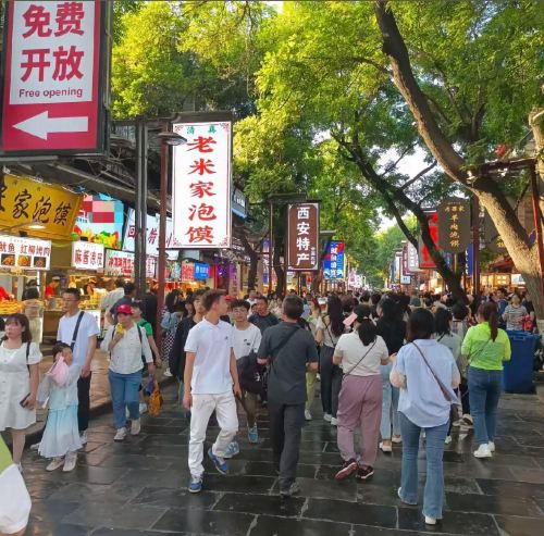 ▲ 回民街,位于莲湖区,是著名的美食文化街区。它是北院门、西羊市等多条街道的统称,汇聚了众多西安特色美食。这里还有10座风格各异的清真寺,洋溢着浓郁的穆斯林文化气息,是感受西安历史文化与市井风情之地