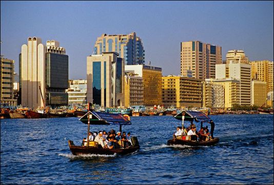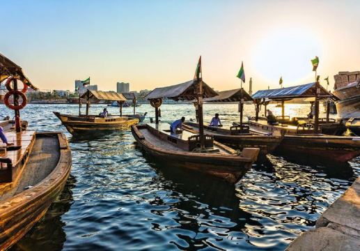 ▲ 迪拜河波光粼粼,传统 abra 穿梭,两岸尽是市井活力