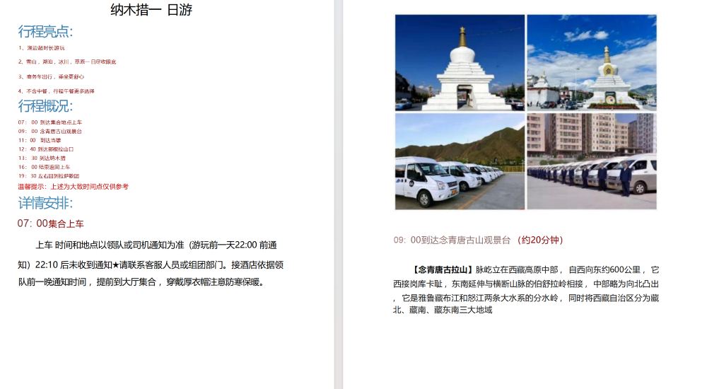 不可控须知:进入冬季后,纳木措景区天气不稳定。我社一般会提前一天晚上询问景区是否下雪,如若晚间已下雪将执行退款或改期操作(截止出行前一天晚上22:00),但不排除凌晨下雪的可能,因此无法保证次日可正常入园参观。如若出团路上遇到大雪,交通管制未能进入景区,根据当地政策和法规,只退还未产生景区门票或观光车费用,现已实行冬游免票政策,产品只包含观光车85/人费用,往返拉萨车费将扣除。下单前请关注出团日期的天气预报。