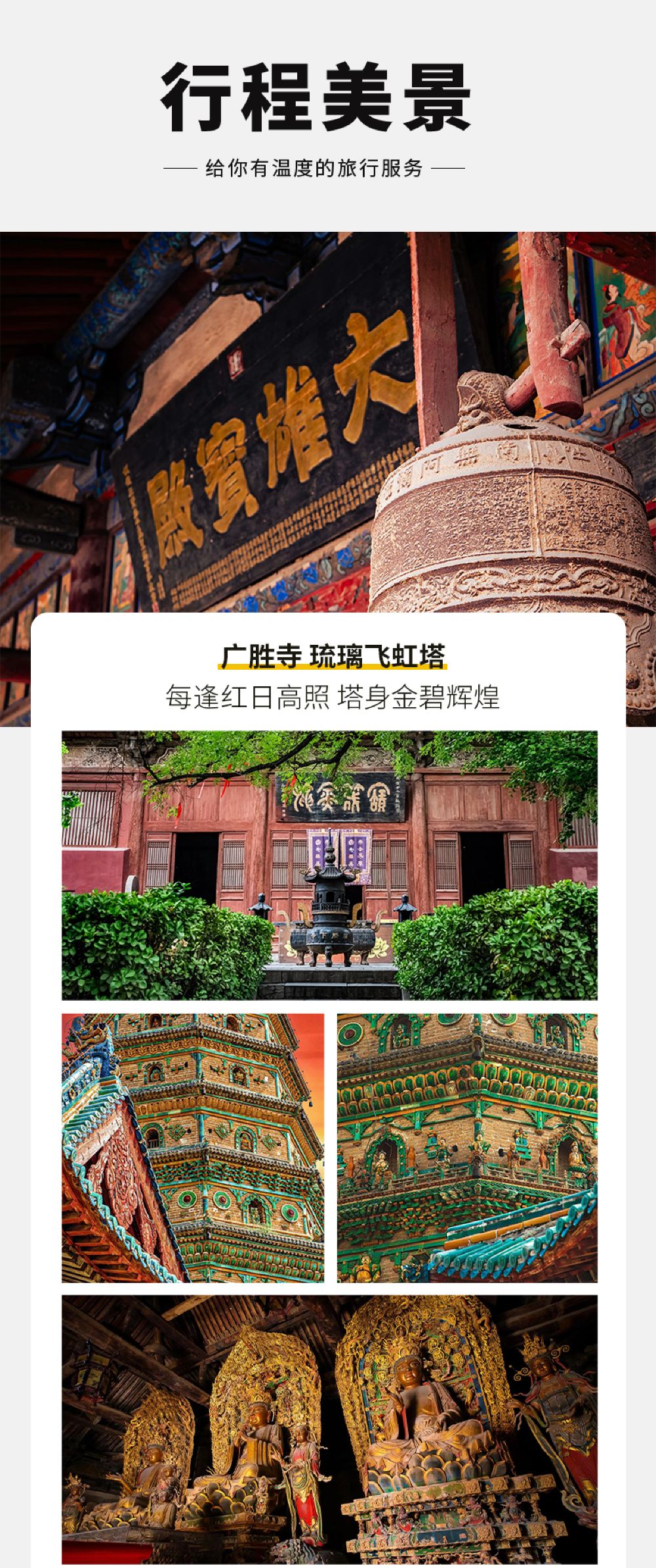 注意:小西天景区60周岁以上免门票,广胜寺65周岁以上免门票。