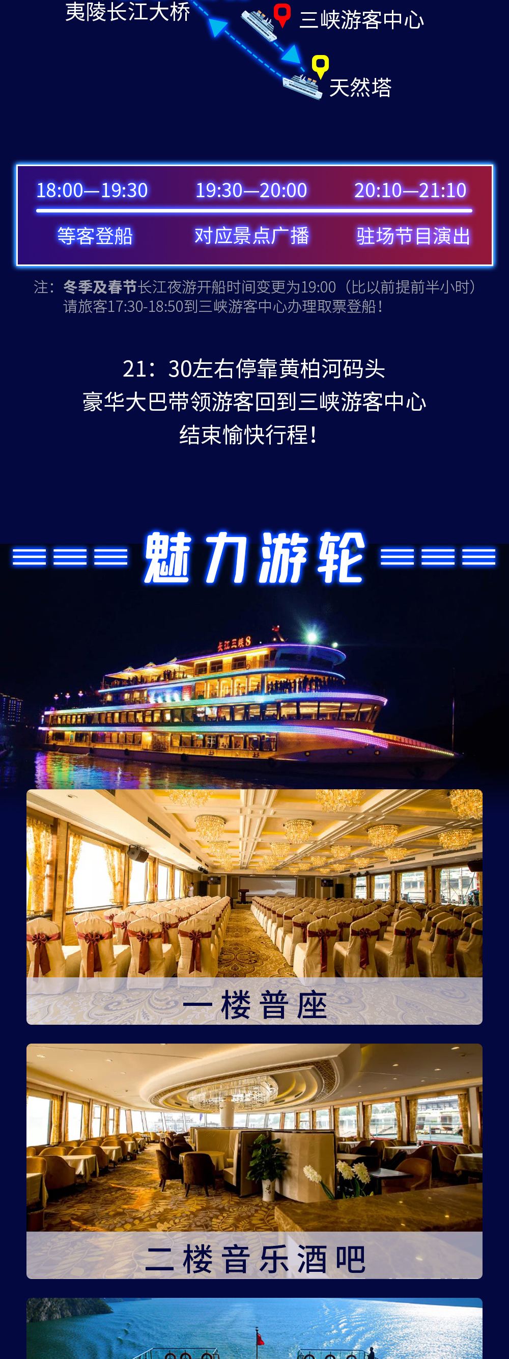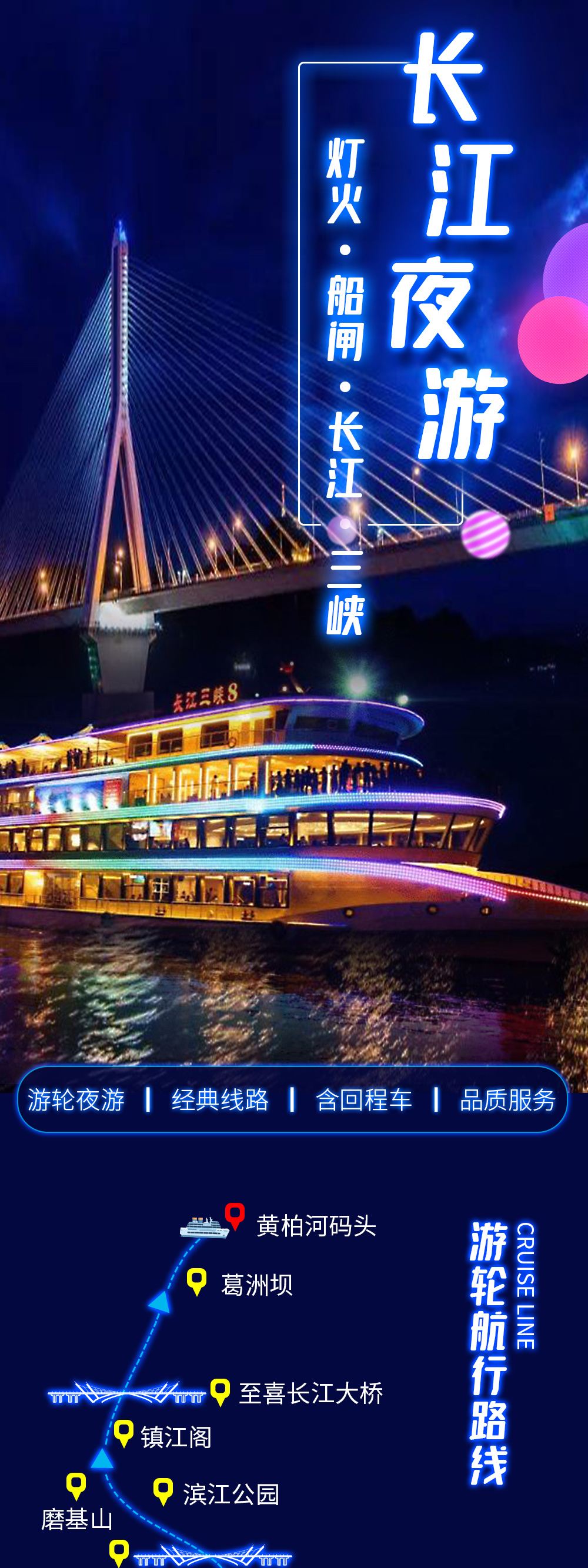 宜昌交运长江夜游游船【[十一热销中]过船闸体验水涨船高,】【沿途欣赏依山傍水的美丽异常独具滨江园林特色的城市风貌,感受城市与山水交融、江风轻抚的惬意与畅快!】