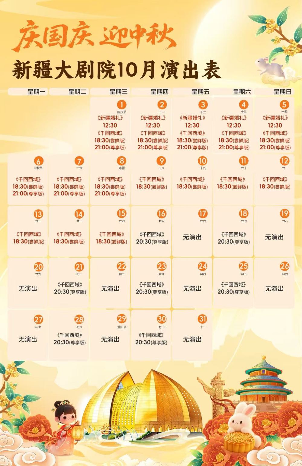 博物馆周一闭馆;新疆大剧院10月份部分日期不演出)