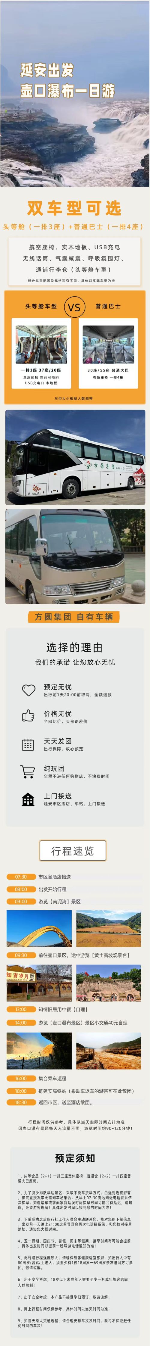 注意:现在壶口日游进入淡季。车型更改安排如下5座舒适车型,豪华7座商务,15人以下安排20座仿考斯特。