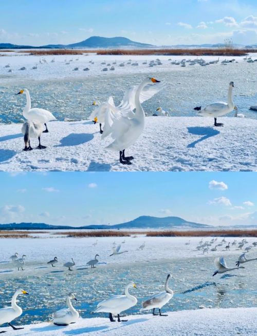 ▲ 【火炬八街】 “小镰仓”之称的火炬八街, 火炬八街的尽头 下面就是威海国际浴场啦!拍完照去海边走走超级舒服 。 【天鹅湖生态旅游区】:拍照打卡天鹅湖, 天鹅湖生态旅游区明清时为防务要地,由于泥沙淤积,港湾逐渐变成半封闭的椭圆形泻湖。湖面很少结冰,湖中繁衍栖息着大量的小鱼小虾和浮游生物,是大天鹅冬季的理想生存之地,冬季,万只大天鹅、几万只野鸭、大雁从西伯利亚、内蒙古等地成群结队悄然降落,栖息越冬,天鹅湖生态旅游区被国内外专家学者誉为"东方天鹅王国"。