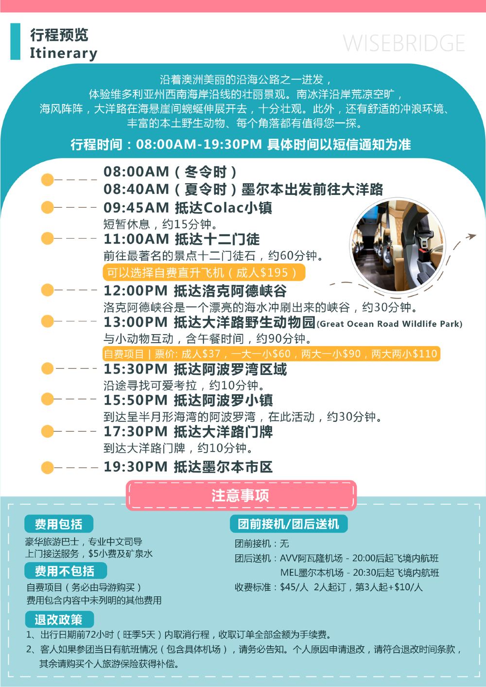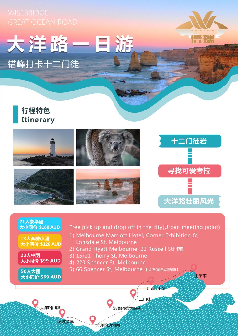墨尔本大洋路十二门徒岩一日游【反线错峰/天天发团/可选接送】【[一日尽揽 · 海洋奇观]乘坐宽敞舒适的巴士,在240公里壮丽海岸线上自由驰骋,尽享大洋路无限风光。】
