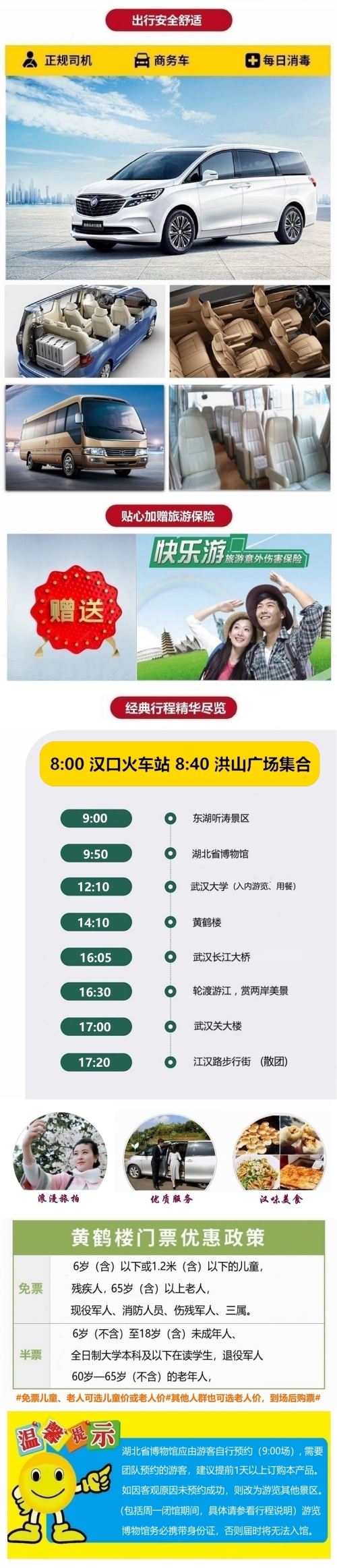 黄鹤楼+省博物馆+东湖+武大+长江大桥+轮渡+江汉关一日游【精品小团、网红打卡 、本土导游,轮渡游江,耳机讲解省博,好评无数。】