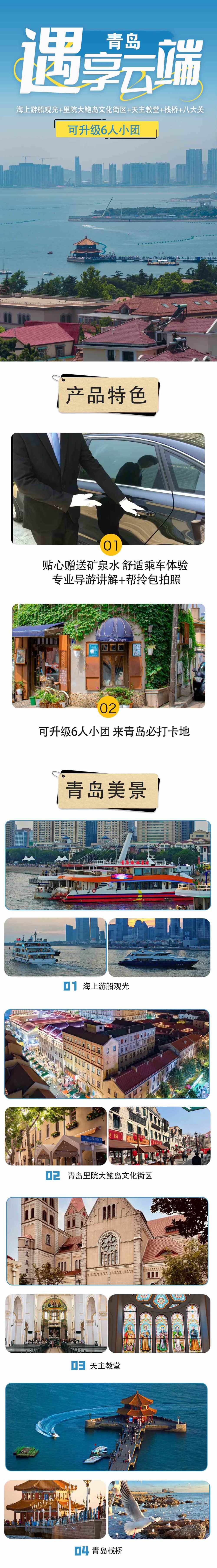 青岛海上游船观光+里院大鲍岛文化街区+天主教堂+栈桥+八大关【可升级6人小团 来青岛必打卡地】