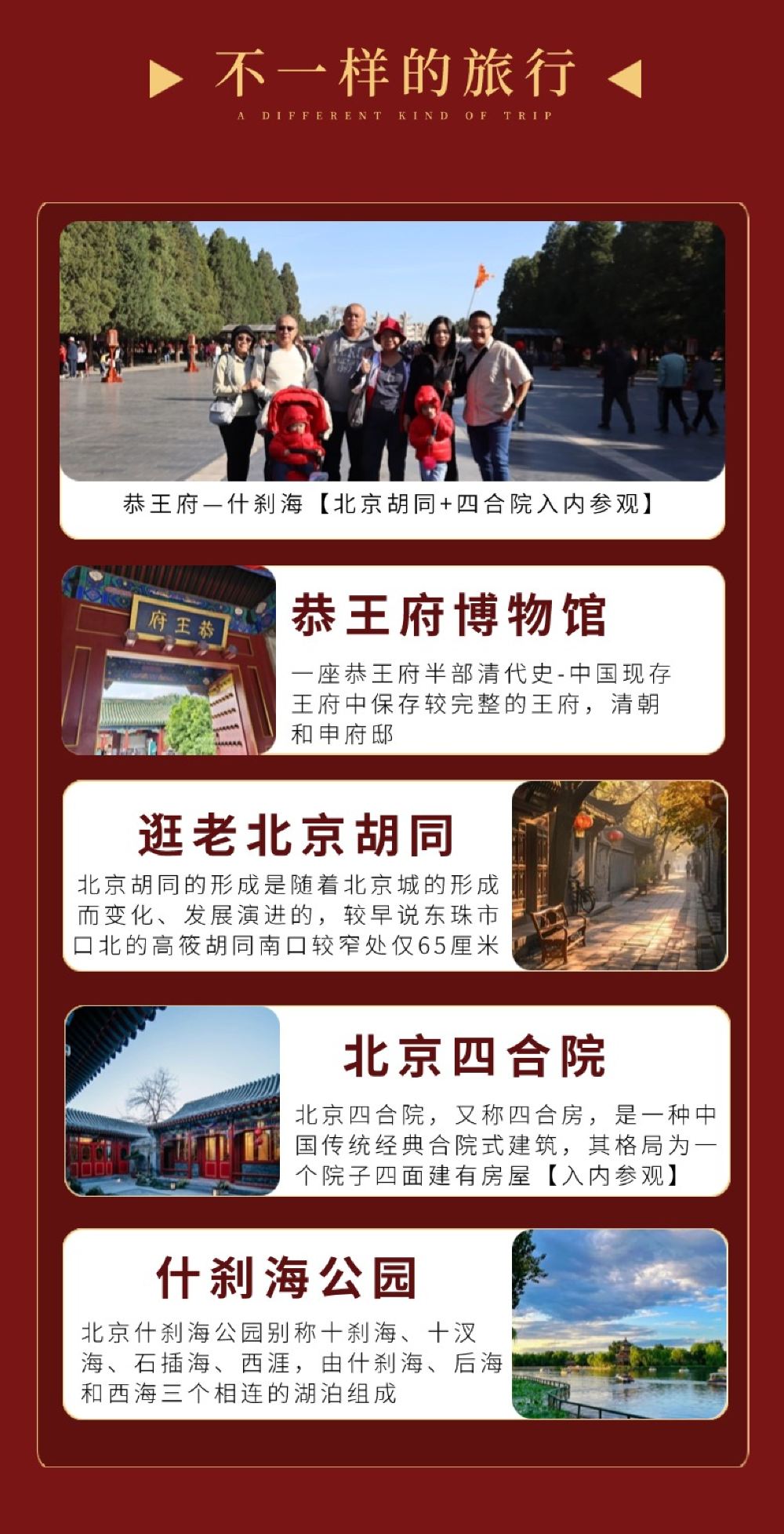北京胡同+四合院入内参观+恭王府北京一日游