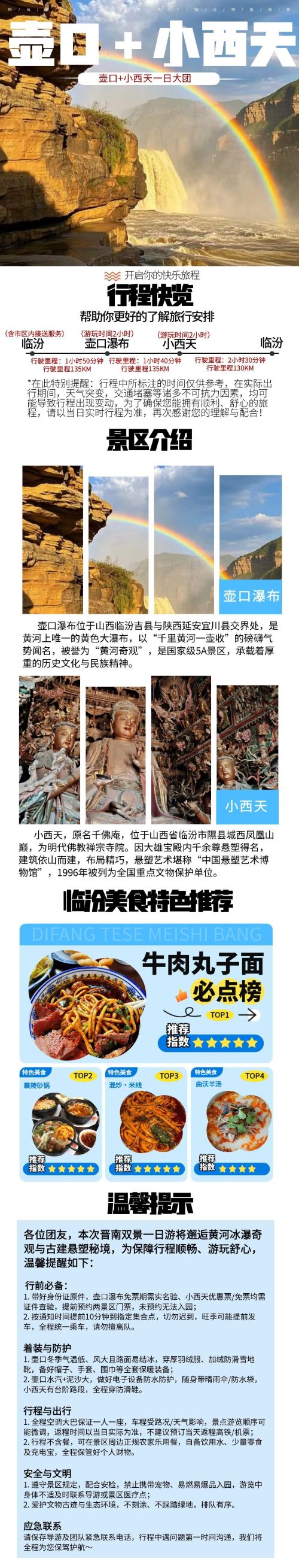 【晋南必打卡】:壶口瀑布+小西天一日游【大团】【正规成团资质全,多人同行氛围佳,全程游玩有保障】