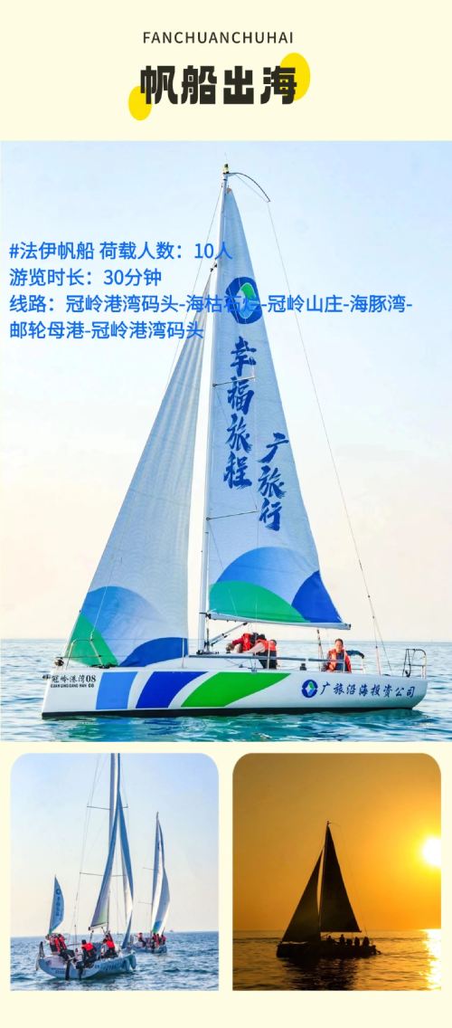 北海帆船/游艇出海游【11人一船/可选市区接送/海上观光】【可选帆船/游艇出海,有概率偶遇海上小精灵-海豚】
