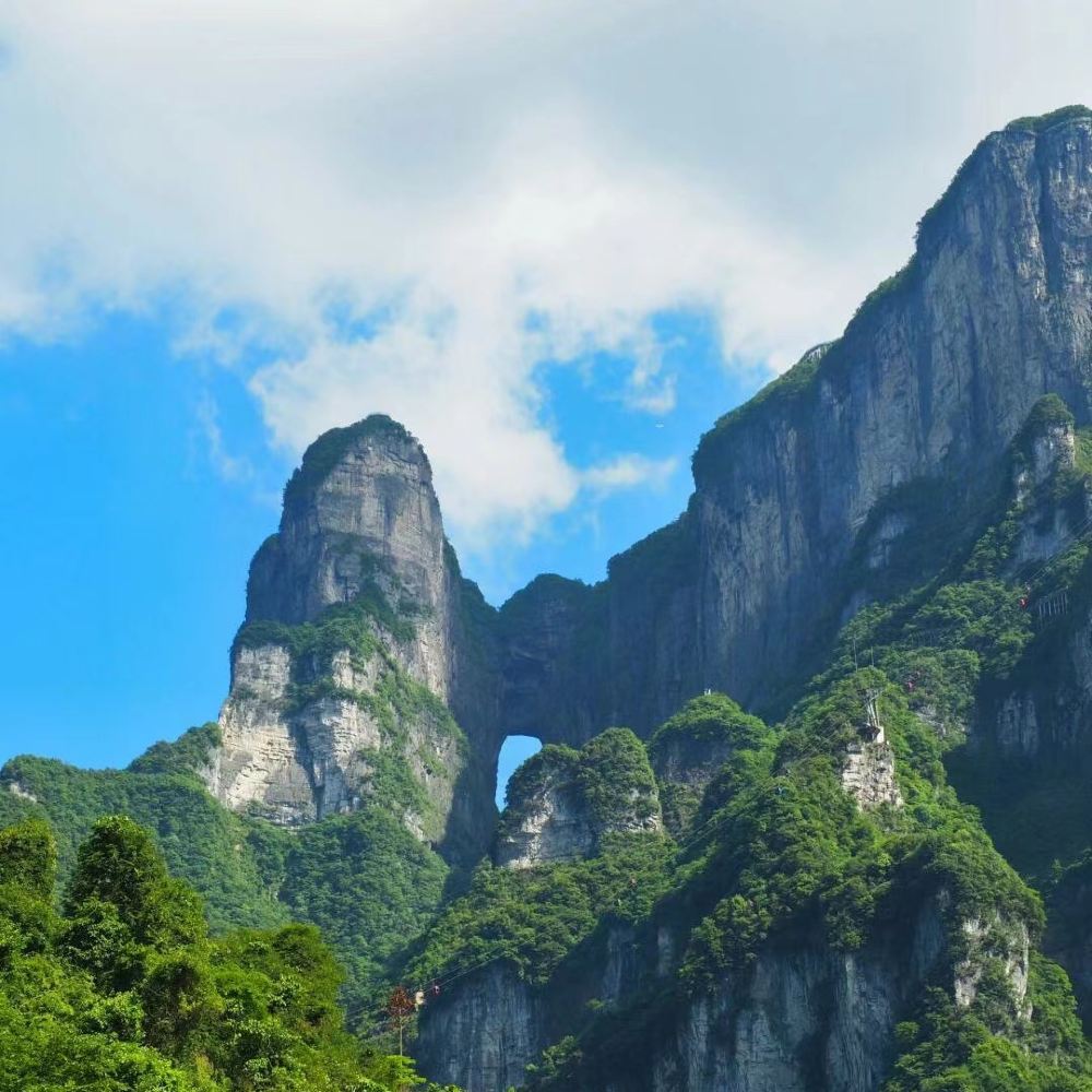 ▲ 天门山是张家界永定区海拔最高的山,主峰海拔 1518.6 米。它是国家 AAAAA 级旅游景区。因自然奇观天门洞而得名,洞内有鬼谷洞、上天梯等自然景观与天门山寺、天门书院等人文景观。