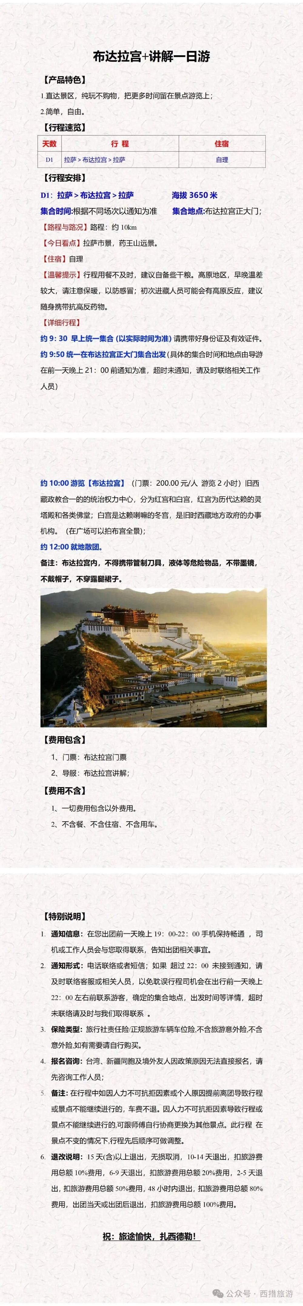 布达拉宫+讲解一日游【纯玩保证·承诺不进店;成团保证·保证出票】
