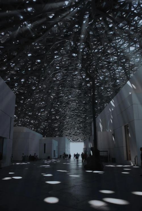 ▲ 光雨穹顶下的艺术方舟:银色镂空穹顶悬浮于海上,阳光如雨洒落纯白建筑,形成万道光斑随波浪流动的梦幻奇景。