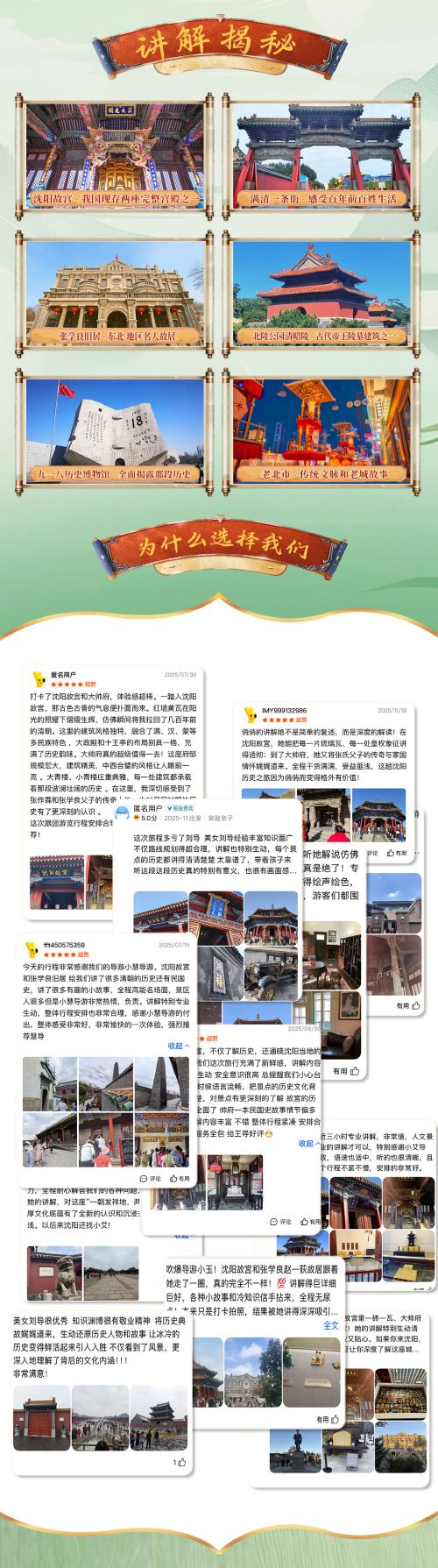 沈阳故宫+张学良旧居+清昭陵+九一八博物馆+老北市一日活动【[专业导游]专业导游多年讲解经验,懂历史,会聊天,拍的了美拍,的了短视频】