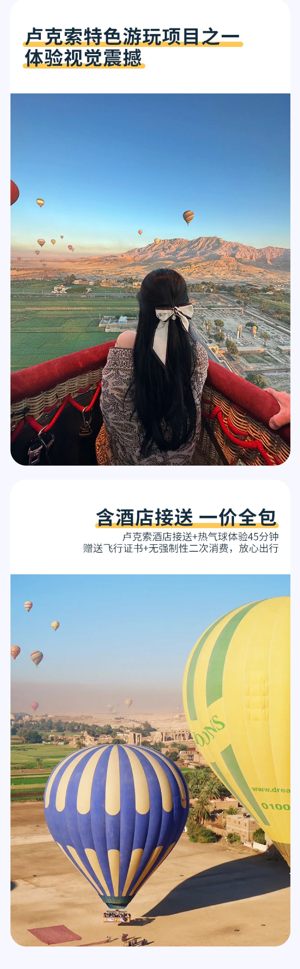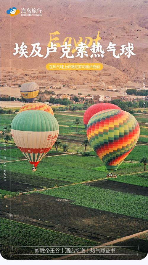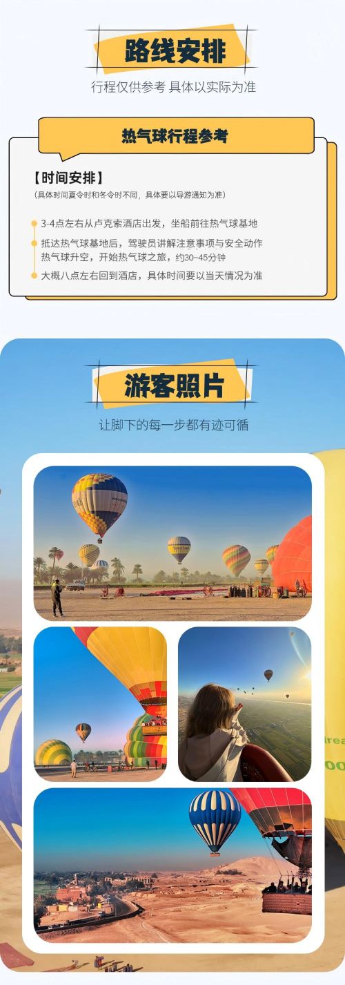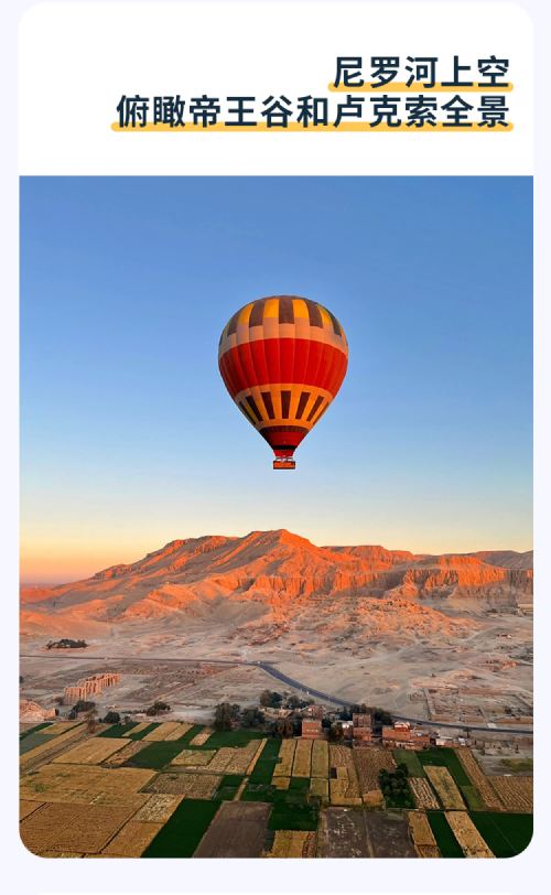 埃及卢克索热气球体验游【可选首飞气球45分钟+酒店接送】【卢克索经典必打卡项目,性价比超高的日出热气球之旅,俯瞰千年古迹】