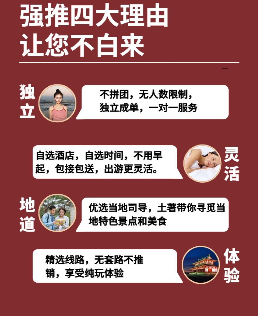 司机兼向导的核心是 “开车 + 带路”,开车是基础,保证行程交通顺畅;向导功能是附加项,主要帮你解决 “去哪玩、怎么去、哪里好吃、景点特性” 这类实际问题,更像个熟悉当地的 “朋友” 带着你转。