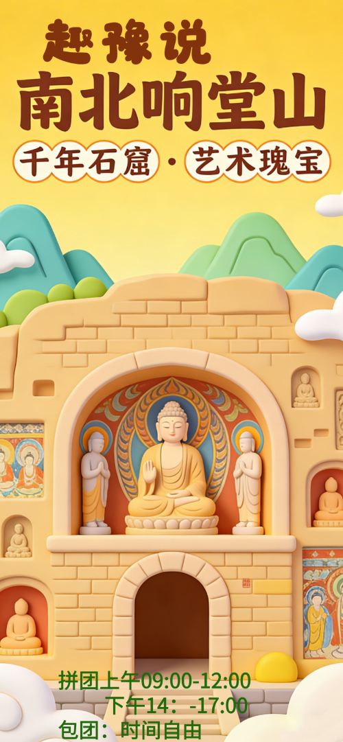 ▲ 上午09:00-12:00北响堂山讲解+游览(3.5 h)石窟加长乐寺加数字博物馆 中午自由自理用餐 下午南响堂14:00-16:00(讲解1.5h)