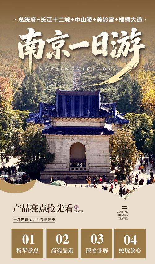 南京总统府+中山陵+美龄宫+梧桐大道一日活动【串联六大核心!一日尽览民国底蕴与江景】
