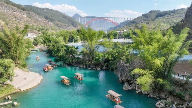 ▲ 贵州罗甸沫阳镇的大小井景区,总面积约38平方公里,集喀斯特溶洞、天坑、暗河、石林于一体,被誉为‘东方洞穴博物馆’和‘天下奇洞’。90余个溶洞与大小井河交织,孕育出原始生态与布依风情共融的秘境。 泛舟碧波上,穿行于喀斯特峰丛之间;探秘天德洞,走进钟乳石幻化的地下宫殿——大小井,等你来一场与自然的深度对话。大小井,不止是风景,更是生活。 夏天来大小井游泳,秋天来徒步探洞,春天看新绿萌发,冬天享暖阳如春——四季皆景,步步惊喜。
