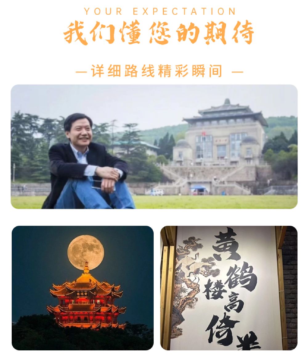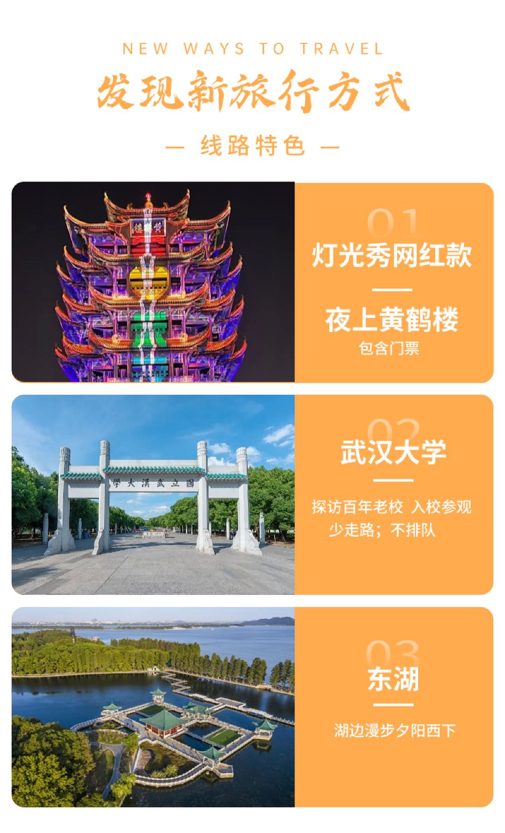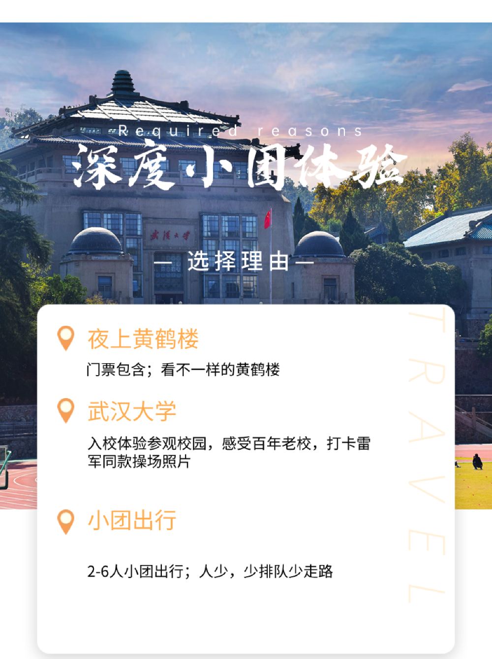 夜上黄鹤楼+武大+东湖【6人内小团 - 少走路逛武大】夜游【【服务保障】24小时贴心管家+车载移动电源+矿泉水】