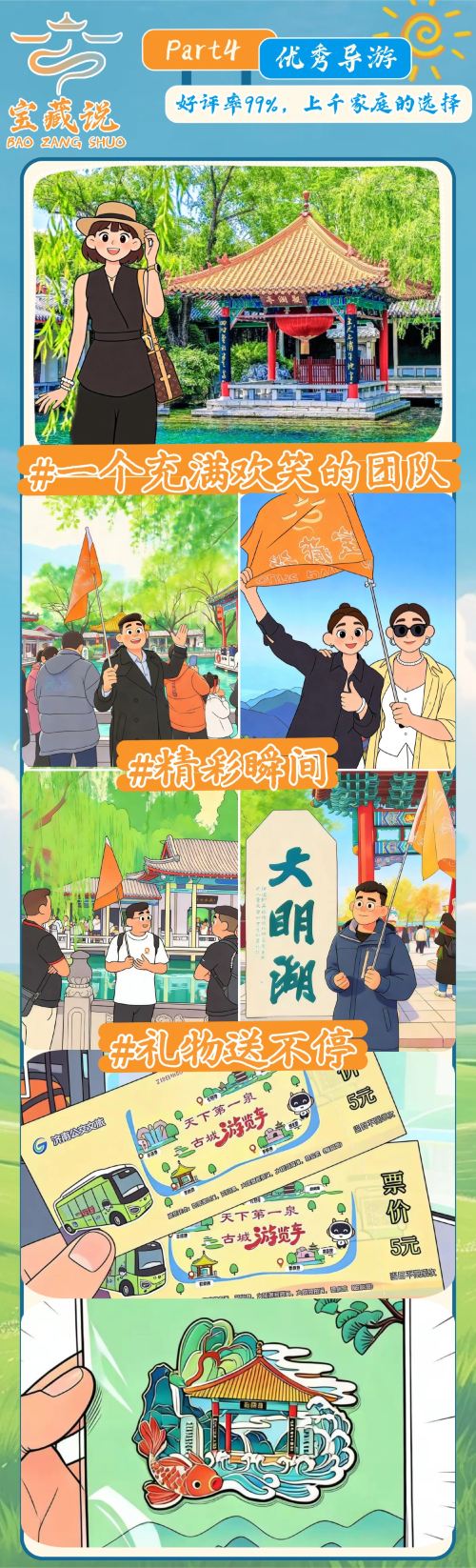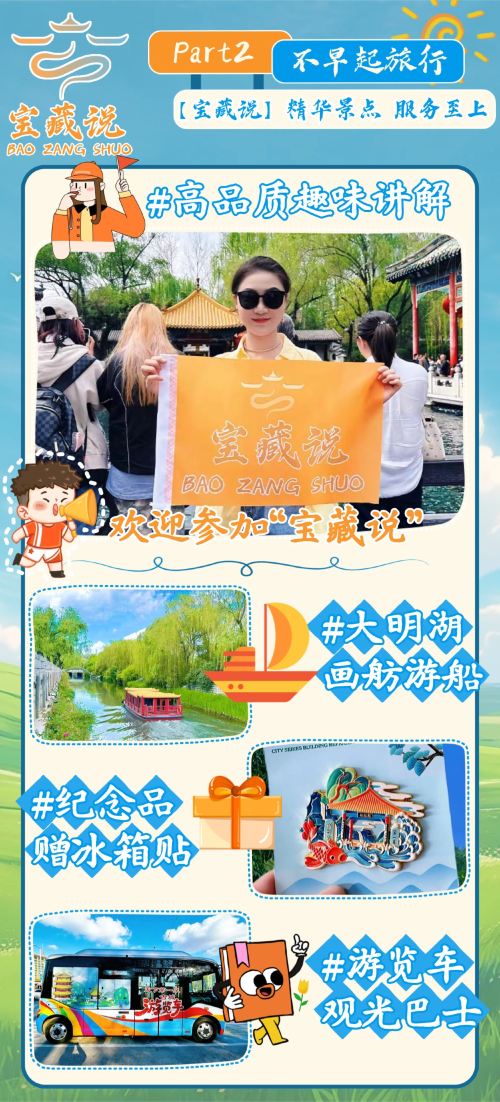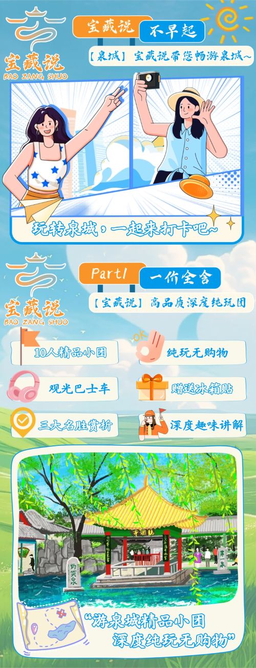 ①济南市区5小时游9:00-14:30(趵突泉-李清照纪念堂-黑虎泉-大明湖-游船-五龙潭-散团)
